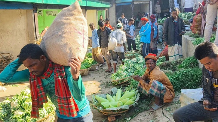 বাজারে সবজি নিয়ে এসেছেন সদর উপজেলার সৈয়দপুর গ্রামের কৃষক ইসমাইল হেসেন। তিনি চার কেয়ার জমিতে ফুলকপি, বাঁধাকপি, টমেটো, ধনিয়া পাতা, আলু চাষ করেছেন। তিনি বলেন, দুই কেয়ার জমিতে ফুলকপি চাষ করেছেন। ফলন ভালো হয়েছে কিন্তু দামটা একেবারে কম। ১০ থেকে ১২ মণ ফুলকপি নিয়ে বাজারে এসেছেন।
