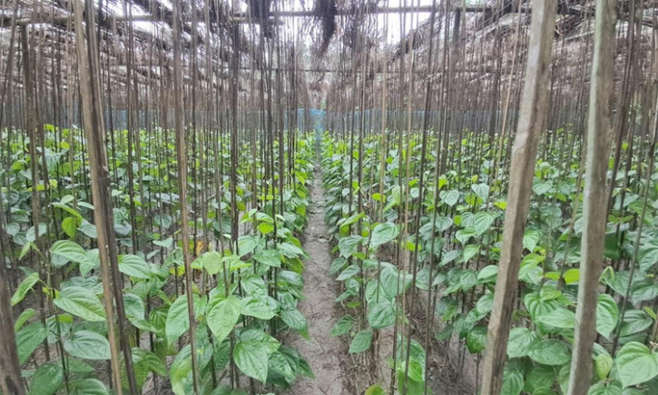 Betel leaf, a staple of Bangladesh’s culinary and cultural traditions, remains an inseparable part of weddings and major social occasions. In Haimchar upazila of Chandpur district, the traditional cultivation of betel leaf continues to flourish, making it one of the region’s most prominent branded products. Betel leaf is among the most profitable crops in this Meghna river coastal upazila, generating nearly Tk 500 million in sales annually.